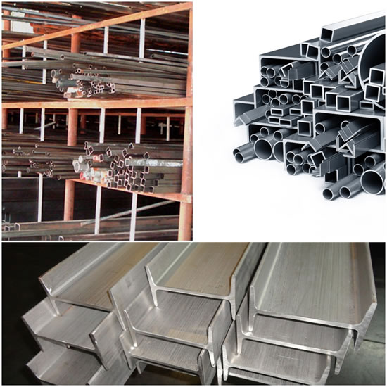 Vigas Laminados I, U, H, Perfis W padrão Açominas, Perfis Dobrados de Chapa U, Simples, Enrijecidos e Especiais, Cantoneira, Ferro Chato ASTM, Tarugo Redondo SAE, Laminado ou Trefilado e Tarugo quadrado SAE.